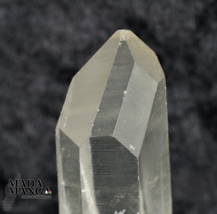 Quarzo ialino grezzo con time link destro, dimensione cm.1,7x2x5,8H, peso 29,6 grammi, provenienza Madagascar.