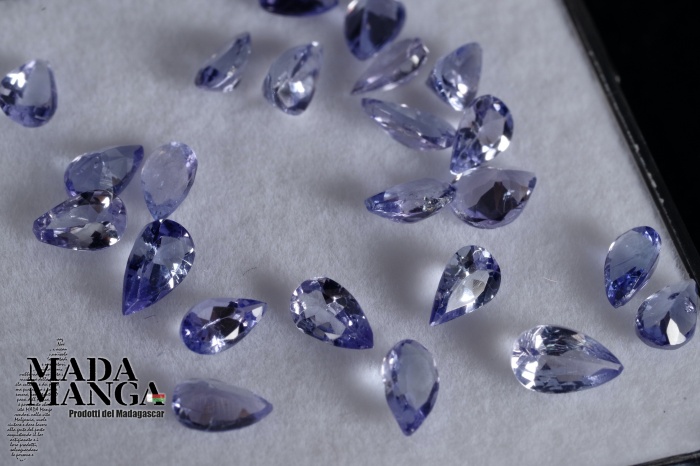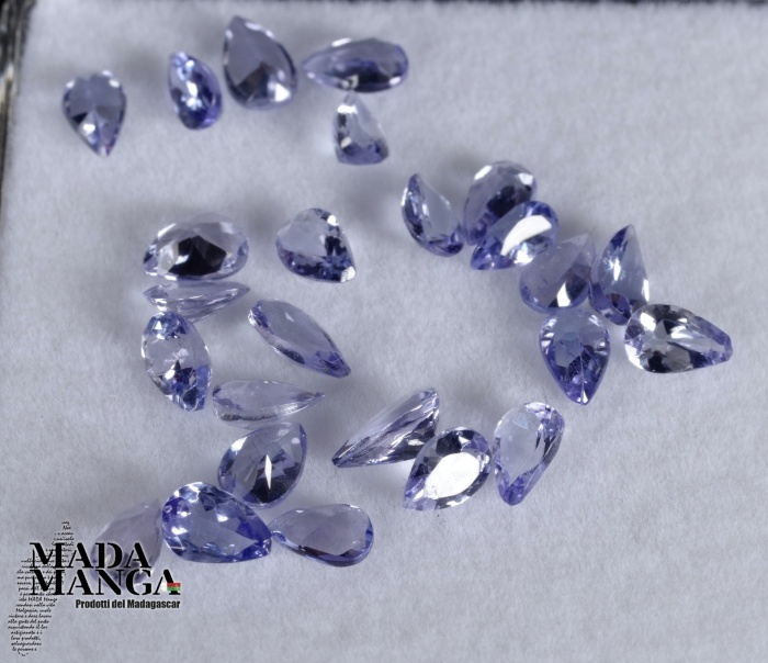 Lotto di n°25 tanzaniti taglio pear, dimensioni mm.5,5x3,7. Tot 4,85 ct.