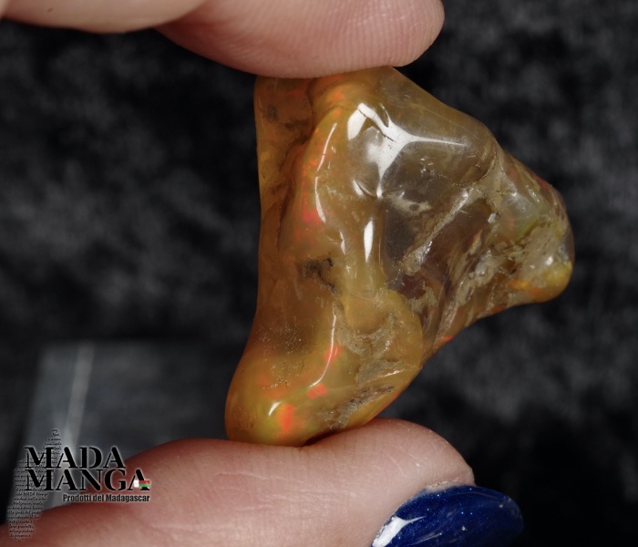 Opale etiope a "pepita" con bei riflessi sul colore rosso, dimensione mm.28x26x14, carati 36.