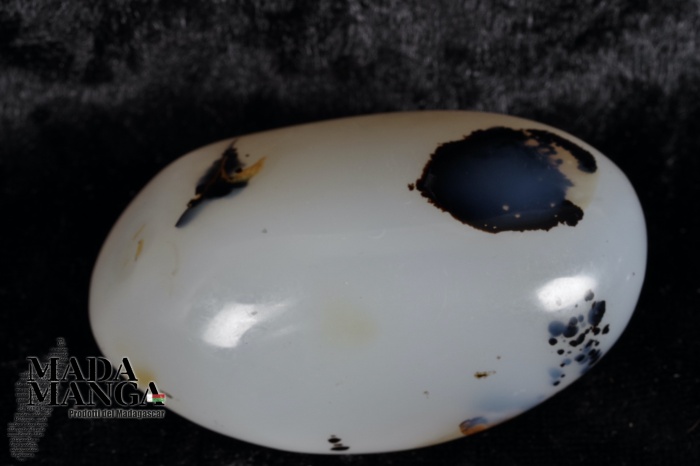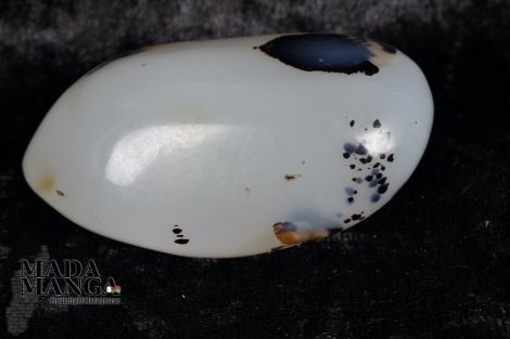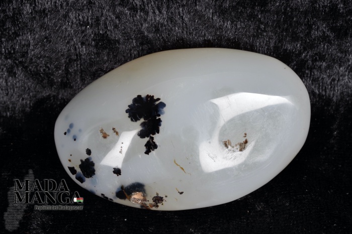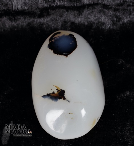 Agata con belle inclusioni di dendriti in forma libera di colore bianco latte, provenienza Madagascar, dimensioni cm.6x3,7x2,6 peso 81,2 grammi.