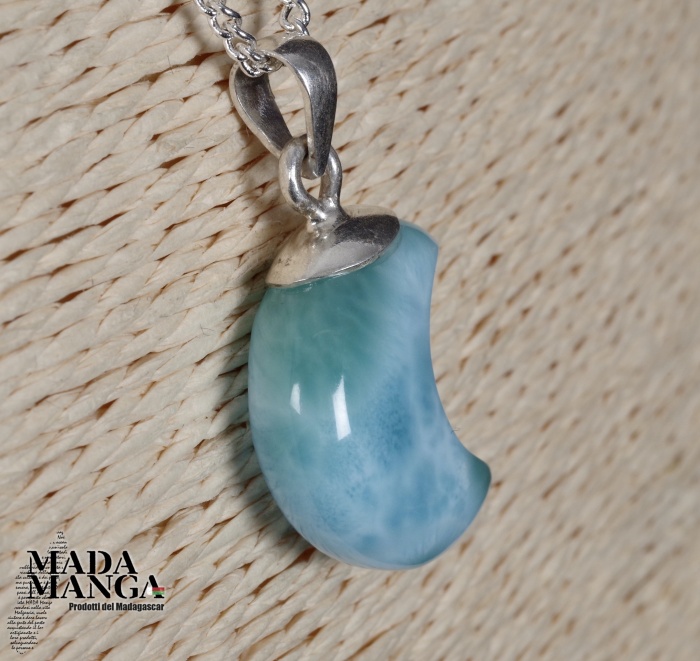 Ciondolo in Larimar di Santo Domingo a forma di luna, dimensioni mm.16x21, peso 4,7 grammi.