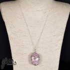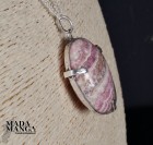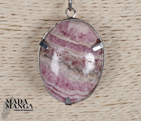Ciondolo con Rodocrosite argentina montata in argento, dimensioni cm.2,8x3,6H, peso 28 grammi, venduto con catenina in acciaio come in foto. La confezione regalo consiste in sacchetto in tulle e scatolina in carta antemoro.