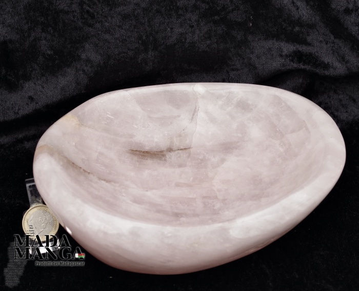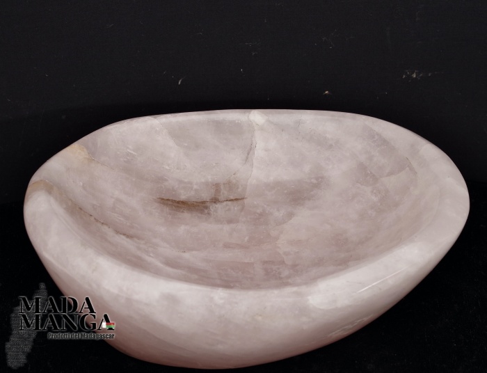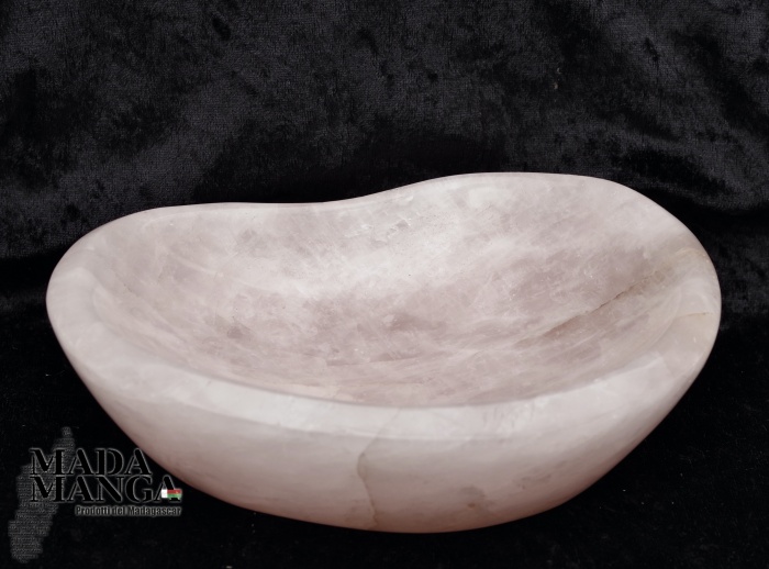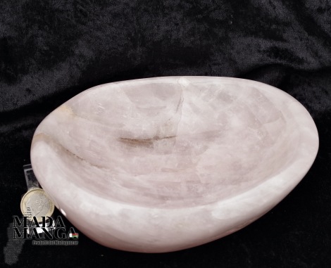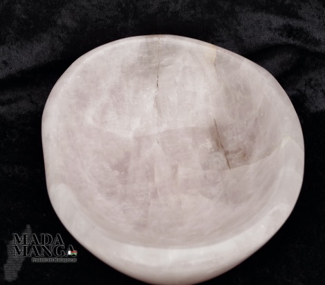 Ciotola in Quarzo Rosa, lavorata e lucidata a mano, provenienza Madagascar, dimensioni cm.19x15,5x6,5H, peso 1780 grammi.