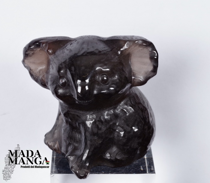 Koala realizzato in quarzo fumè, dimensioni cm.4,4x4,5x5H, peso 113,6 grammi.