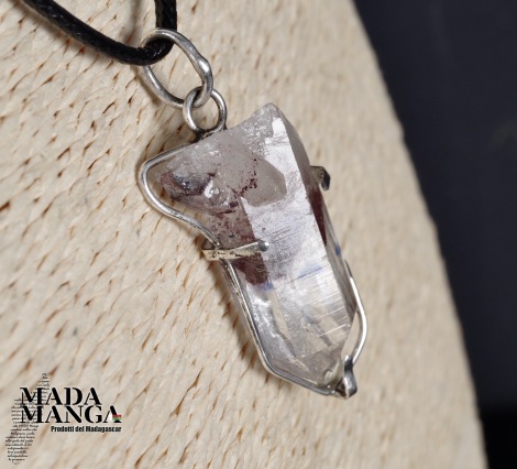 Ciondolo con Quarzo grezzo con fantasma montato in Argento, dimensioni cm.2x2,9H, peso 5,5 grammi.