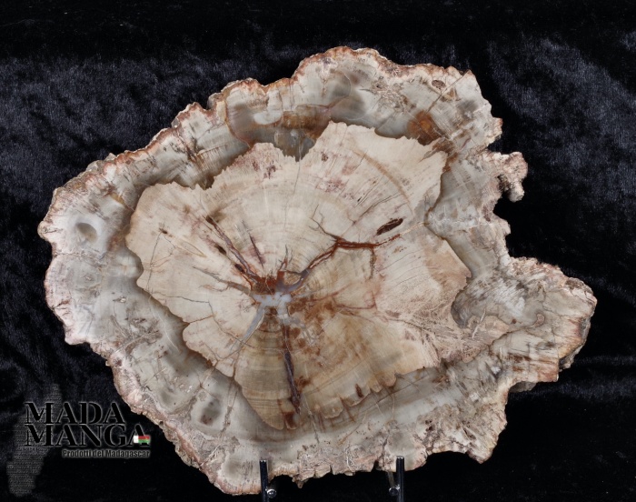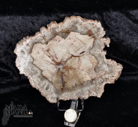 Fetta di Legno Fossile, con due superfici lucidate, con sfumature di colore sul grigio e panna, dimensioni cm.19,3x15x1,6 sp. peso 742 grammi. Provenienza Madagascar.
