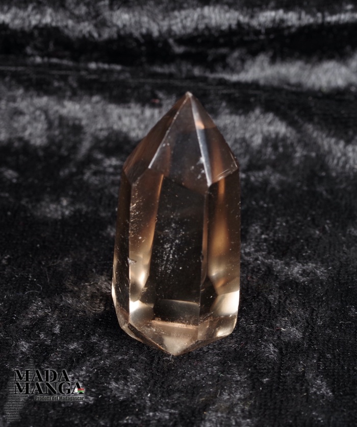 Punta di Quarzo Citrino lucidata di colore ambrato intenso , dimensioni cm.2,1x1,9x4,5H, peso 24,5 grammi, provenienza Madagascar. I colori più intensi sono dovuti alla maggiore concentrazione di ossidi di ferro e a volte con delle velature di fumè.