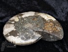 Ammonite tagliata e lucidata, bella definizione dei setti di crescita con piccoli geodi, dimensione cm.19x15,3x4,2 spessore, peso 1523 grammi.