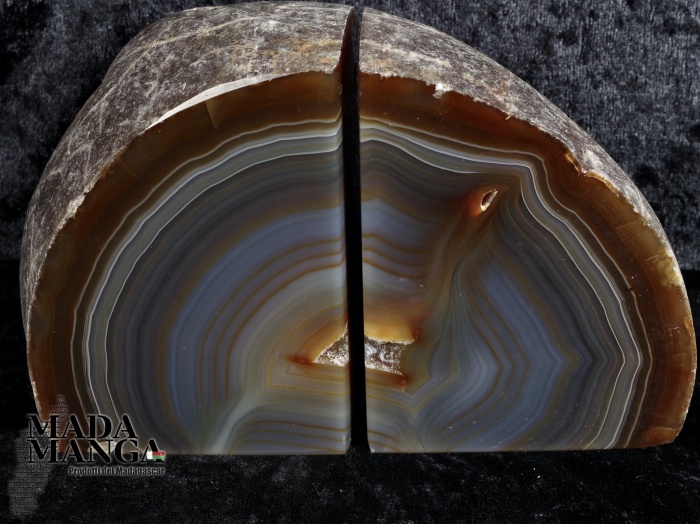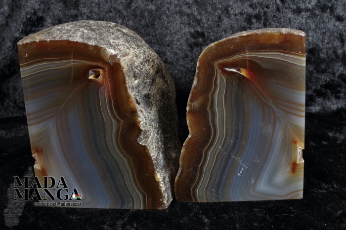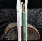 Fermalibri in Agata con bellissime fasciature multicolori, provenienza Brasile, lucidati su due lati e lasciati grezzi nella parte posteriore dimensione complessiva cm.15x7x10H. Peso complessivo gr.1840