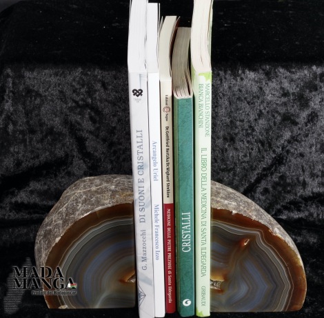 Fermalibri in Agata con bellissime fasciature multicolori, provenienza Brasile, lucidati su due lati e lasciati grezzi nella parte posteriore dimensione complessiva cm.15x7x10H.