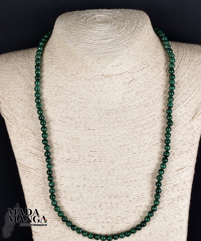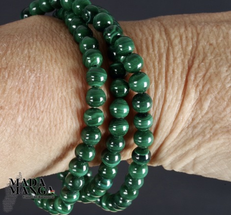 Collana elasticizzata in malachite, che può diventare un bracciale, elementi tondi da mm.5,8, lunghezza complessiva filo cm.55, peso 61 grammi.