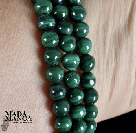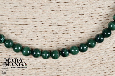 Collana elasticizzata in malachite, che può diventare un bracciale, elementi tondi da mm.5,8, lunghezza complessiva filo cm.55, peso 61 grammi. La confezione regalo consiste in sacchetto in tulle e scatolina in carta antemoro.