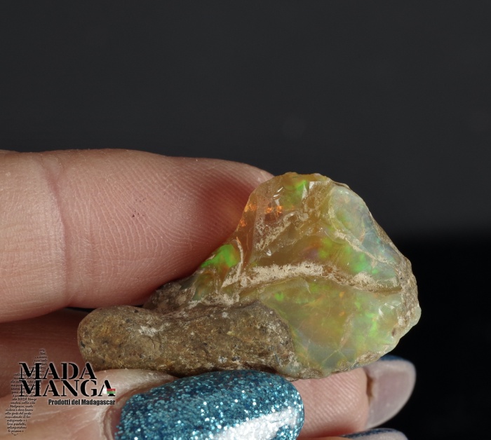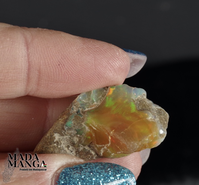 Opale etiope a "pepita" con riflessi sul giallo/arncio e verde, dimensione mm.31x19x18, 35 carati.