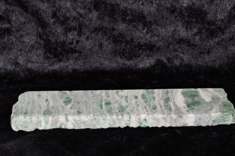 Giada della Val Pellice (Piemonte), dimensioni cm.13,5x3x0,8, peso 99,6 grammi, lucidata sulle due superfici.