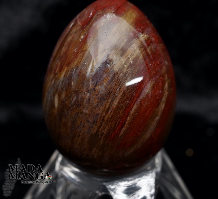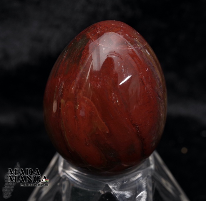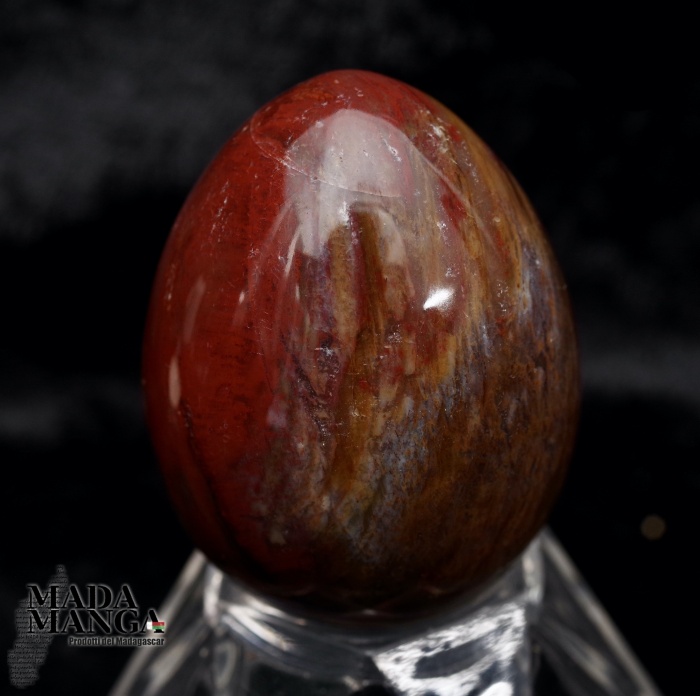 Uovo in Legno Fossile di colore rosso intenso con sfumature fino al rosa, realizzato a mano, dimensioni cm.3x4,1H, peso 52,2 grammi, provenienza Madagascar.