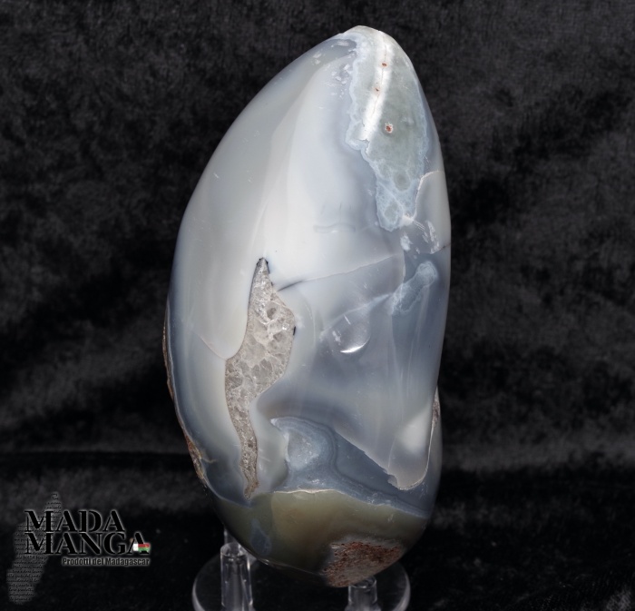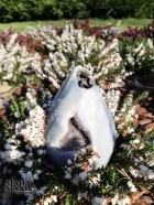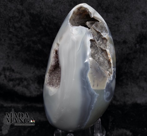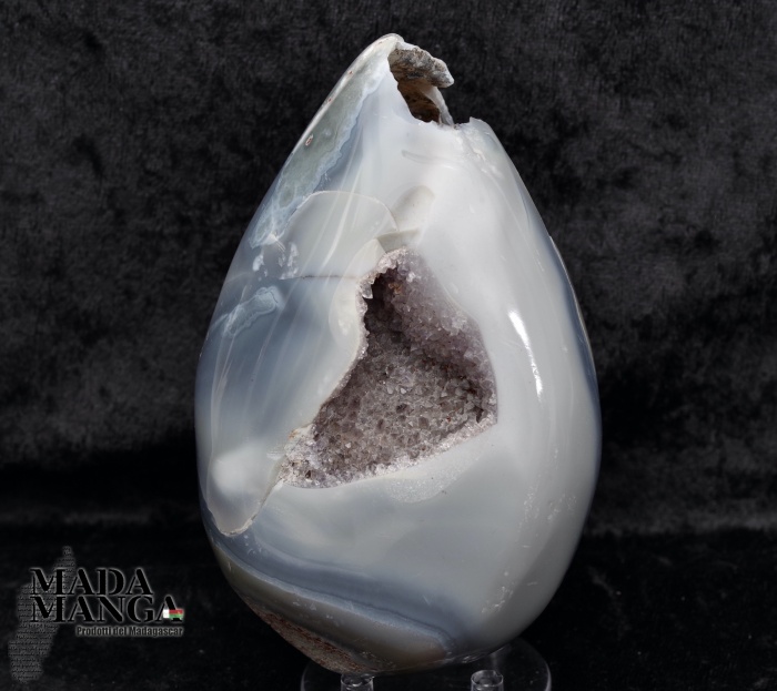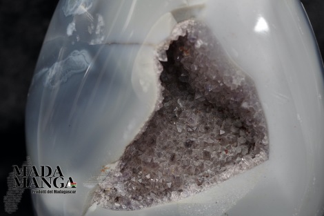 Geode di ametista con agata lavorato a uovo, l'agata nella parte posteriore dell'uovo presenta delle inclusioni di dendriti, provenienza Madagascar, Dimensioni cm.7,2x12,2H, peso 662 grammi.
