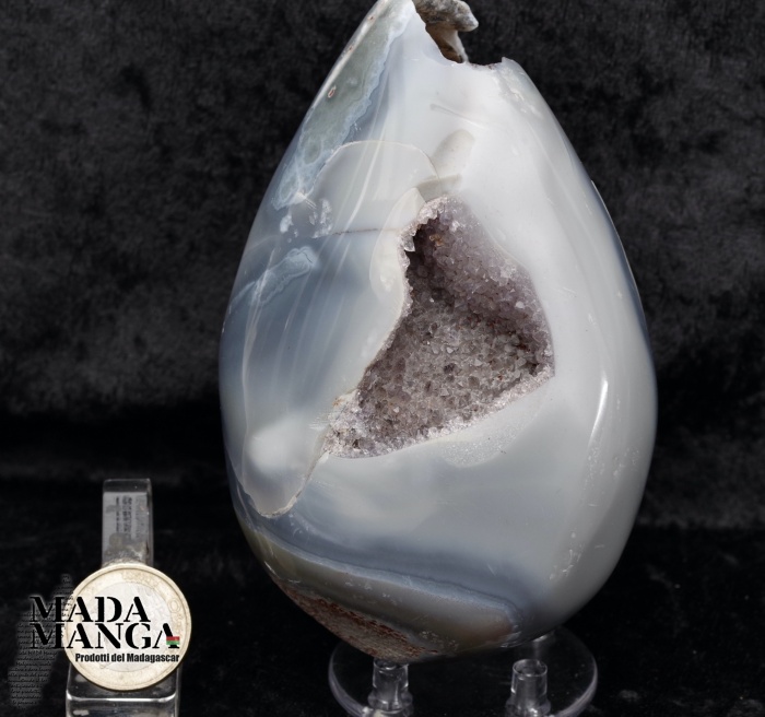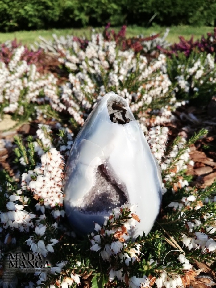 Geode di ametista con agata lavorato a uovo, provenienza Madagascar, Dimensioni cm.7,2x12,2H, peso 662 grammi.