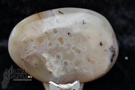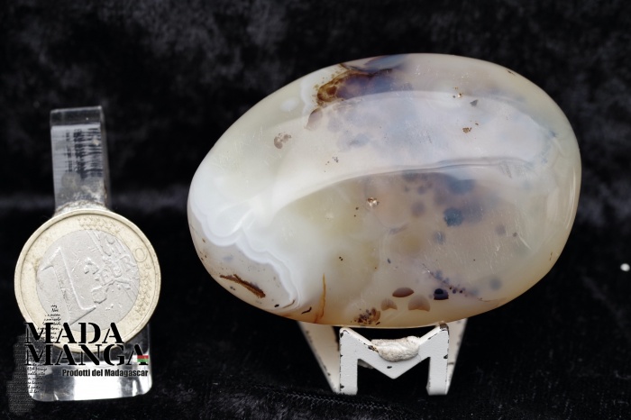 Agata con inclusioni di dendriti in forma libera, provenienza Madagascar, dimensioni cm.6,2x4,3x2, peso 76,3 grammi.