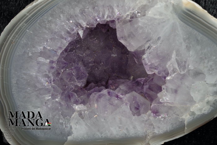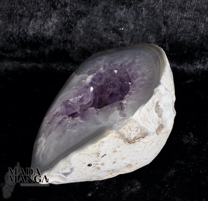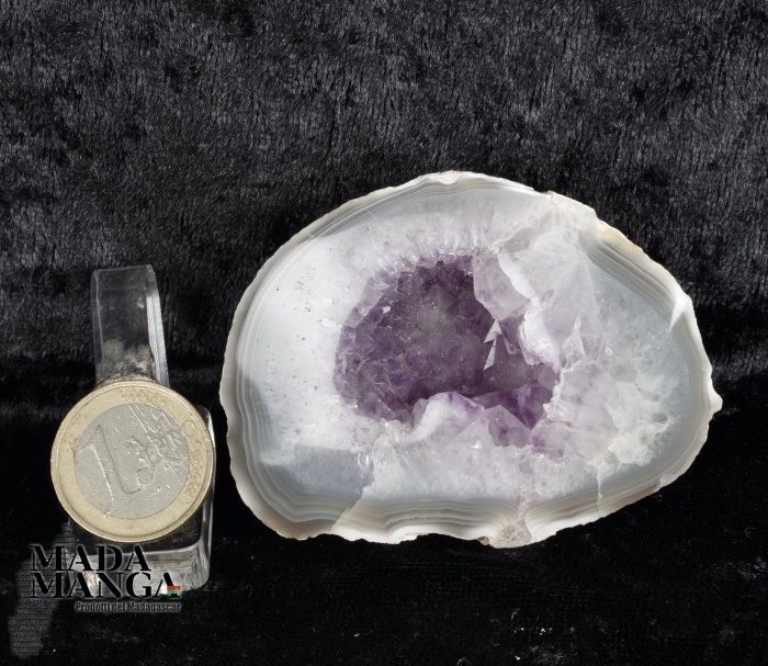 Geode di Ametista con agata, provenienza Madagascar, dimensioni cm.6,9x5,4x3,1, peso 130,5 grammi.