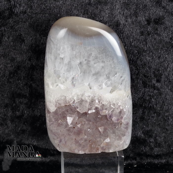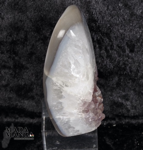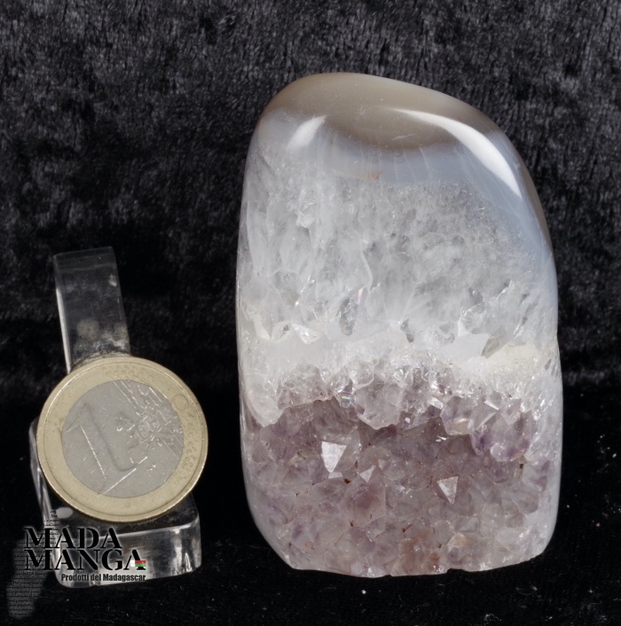 Geode di Ametista con agata lucidata, provenienza Madagascar, dimensioni cm.4,4x2,6x7H, peso 128 grammi.