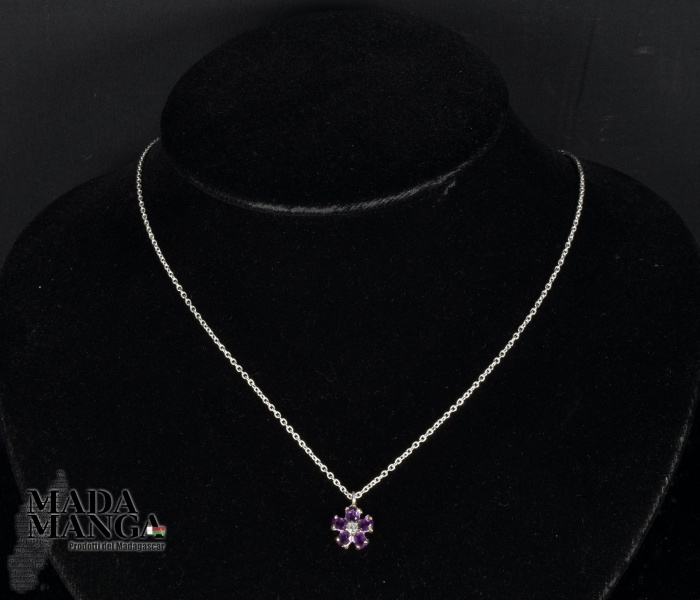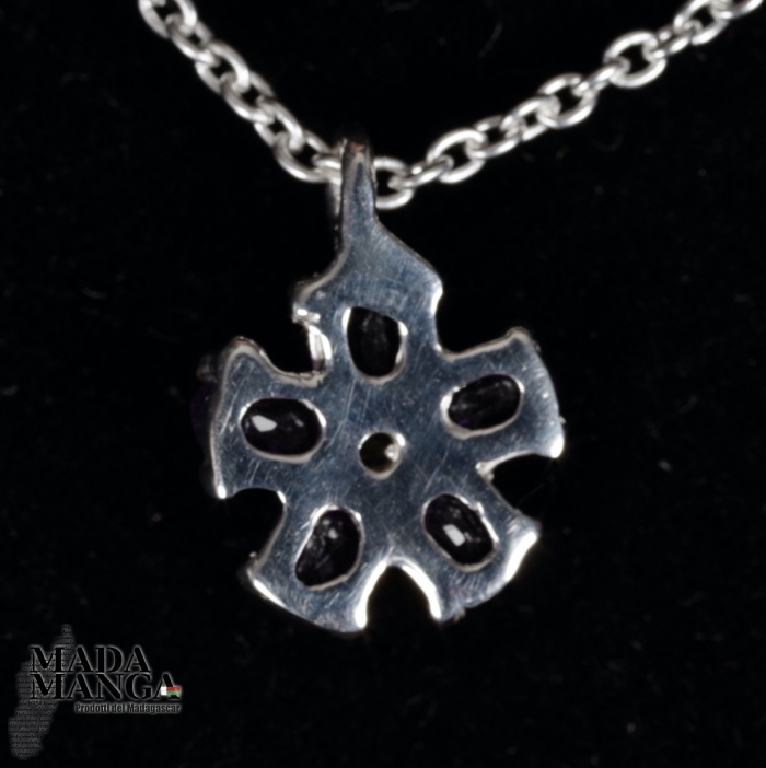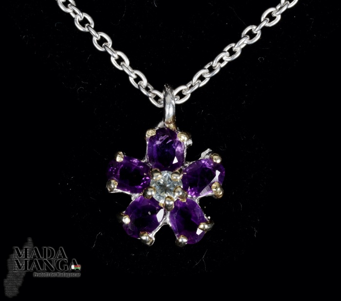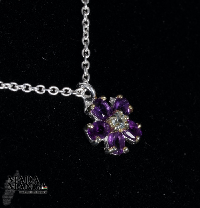 Collana in Argento 925 con pendente a forma di fiore da mm.10x10 con Ametiste e Topazio centrale.