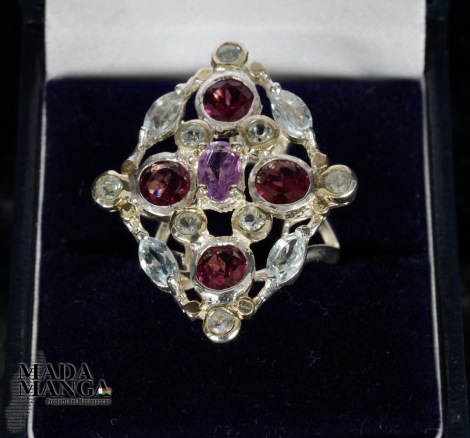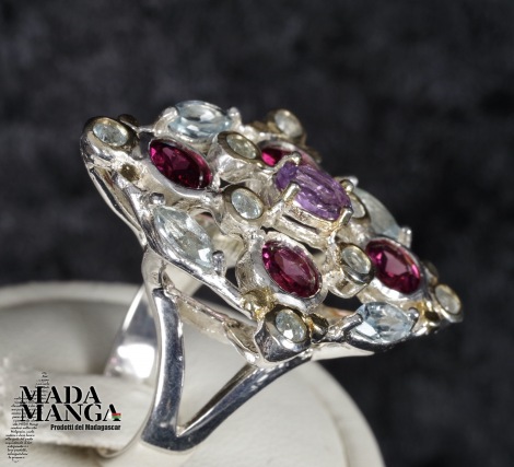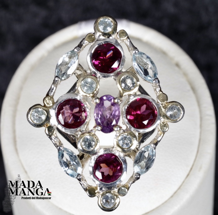 Anello in Argento con Ametista, Rodoliti e Topazi