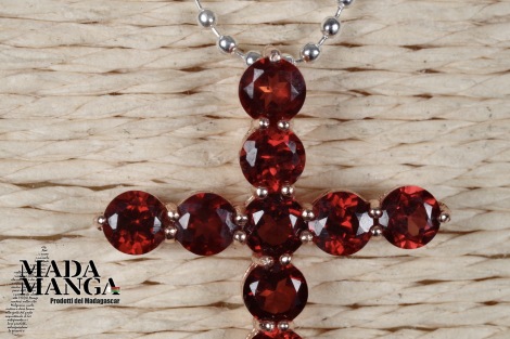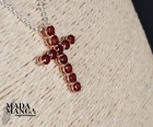 Ciondolo a forma di croce in Argento 925 con placcature in oro rosa con n°11 granati da mm.4x4.