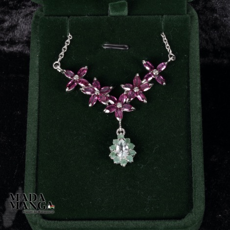Collana in Argento con Acquamarina, smeraldi e rodoliti