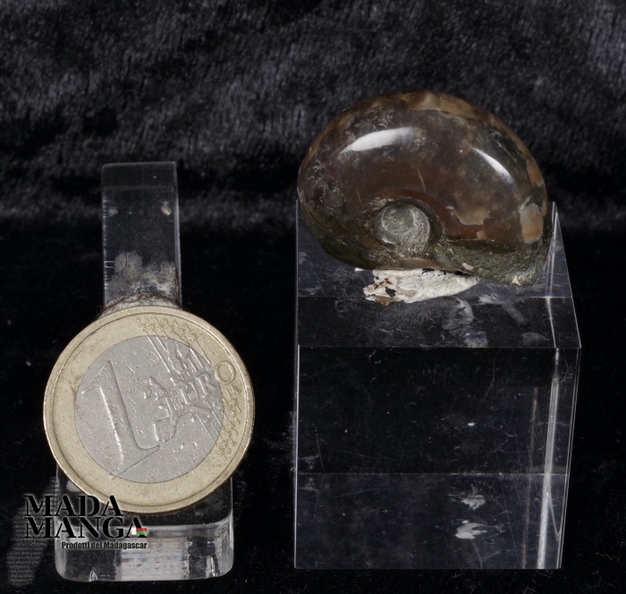 Ammonite intera lucidata con guscio parziale, dimensioni cm.2,3x2,8, provenienza Madagascar.