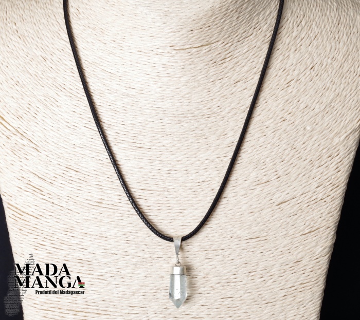 Ciondolo con Acquamarina di bella trasparenza, dimensioni cm.0,8x0,8x1,2H + gancio, peso 2,3 grammi. Venduto con laccetto in corda cerata. La confezione regalo consiste in sacchetto in tulle e scatolina in carta antemoro