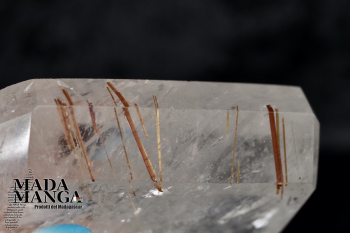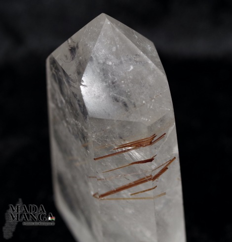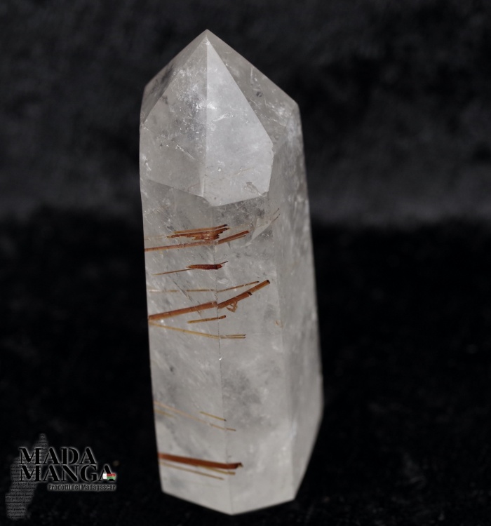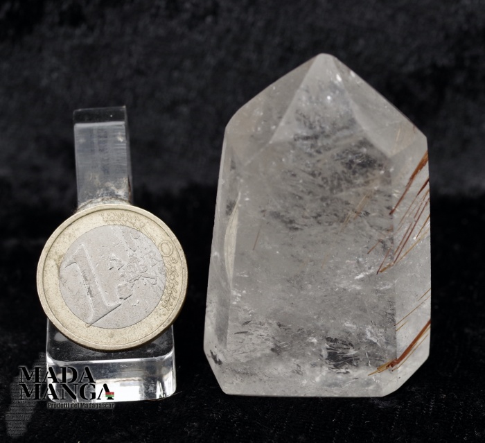 Punta di Quarzo Ialino con inclusione di rutili color rame, dimensioni cm.3,5x2x5,6H, peso 60,3 grammi. Provenienza Madagascar.