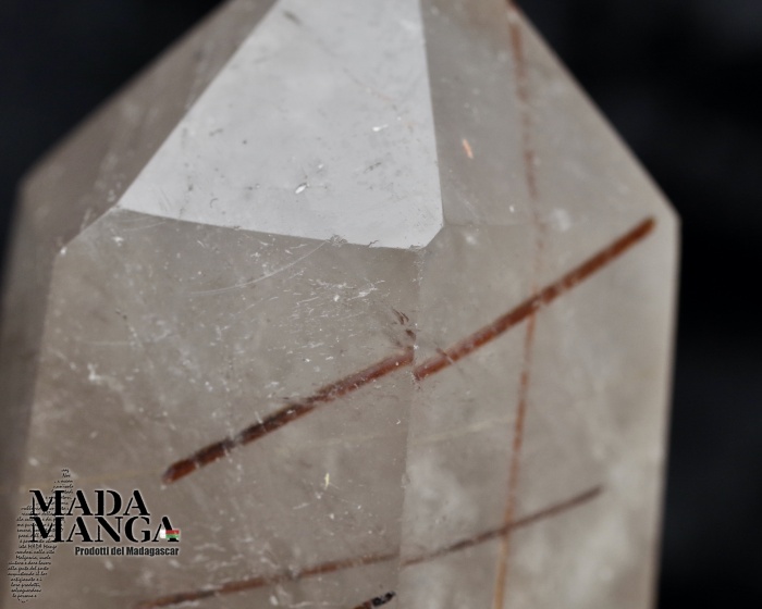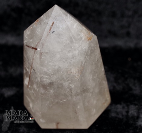 Punta di Quarzo Ialino con inclusione di rutili color rame, dimensioni cm.4x3,9x6,5H, peso 151,5 grammi. Provenienza Madagascar.