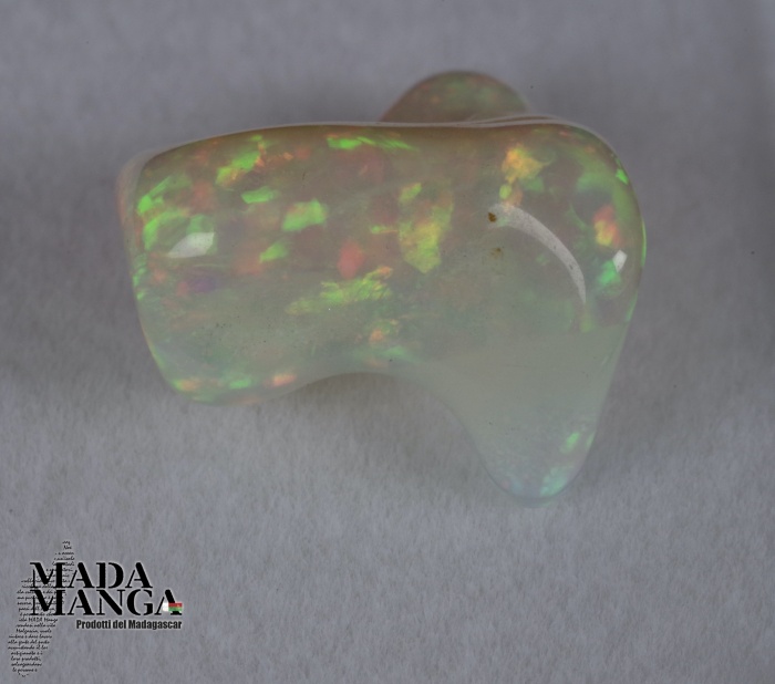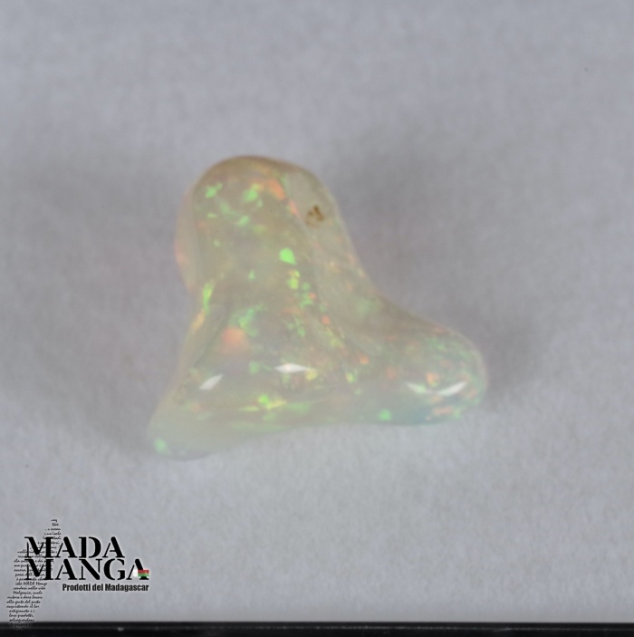 Opale etiope di forma irregolare, lucidato su tutti i lati, con bella rifrazione di colori, dimensione mm.13x12.