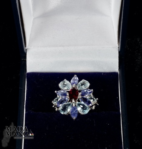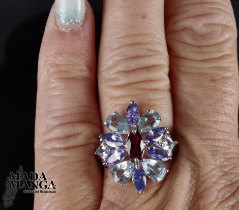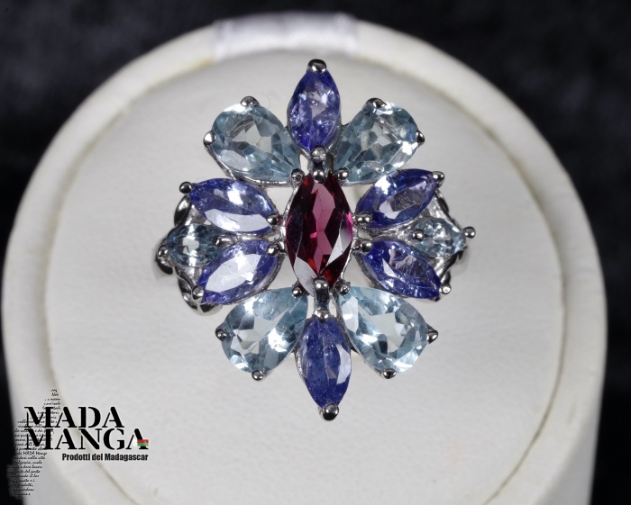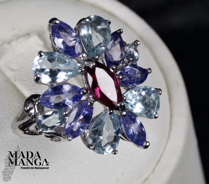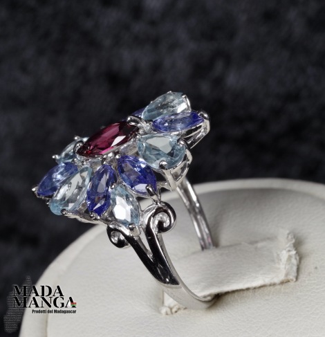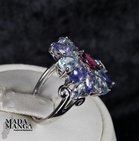 Anello in Argento con Rodolite, Tanzaniti e Acquemarine