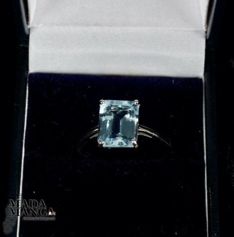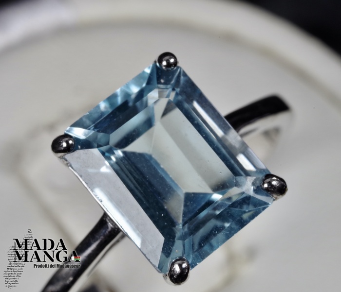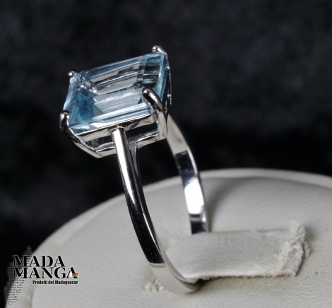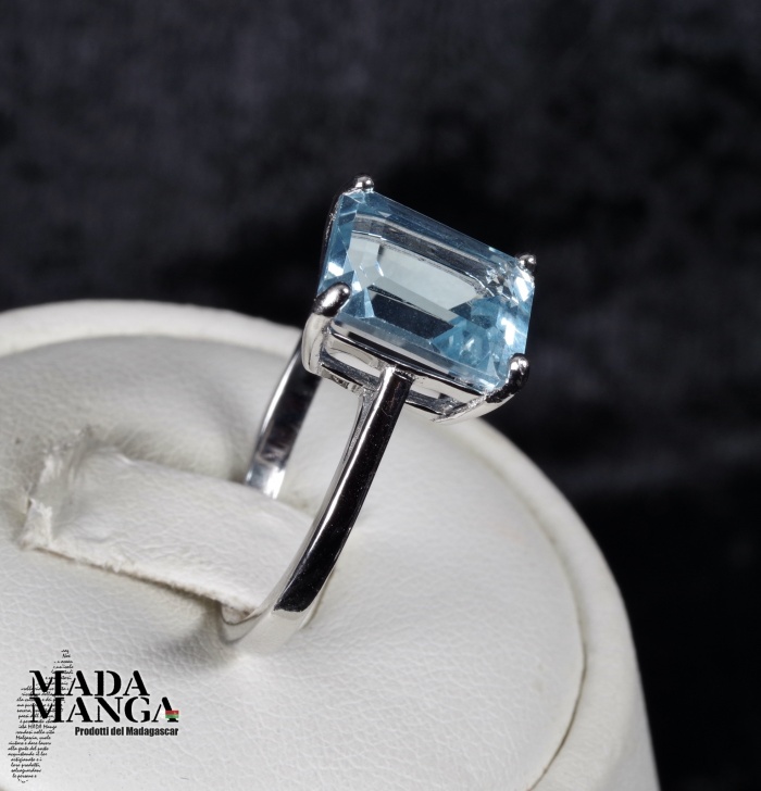 Anello in Argento 925 con placcature in oro bianco, con topazio da mm.10x8. Misura americanana 8 , misura italiana 17, diametro interno mm.18,19. peso anello 2,5 grammi. Venduto con scatolina regalo. L'anello è realizzato artigianalmente in pezzo unico per modello e misura